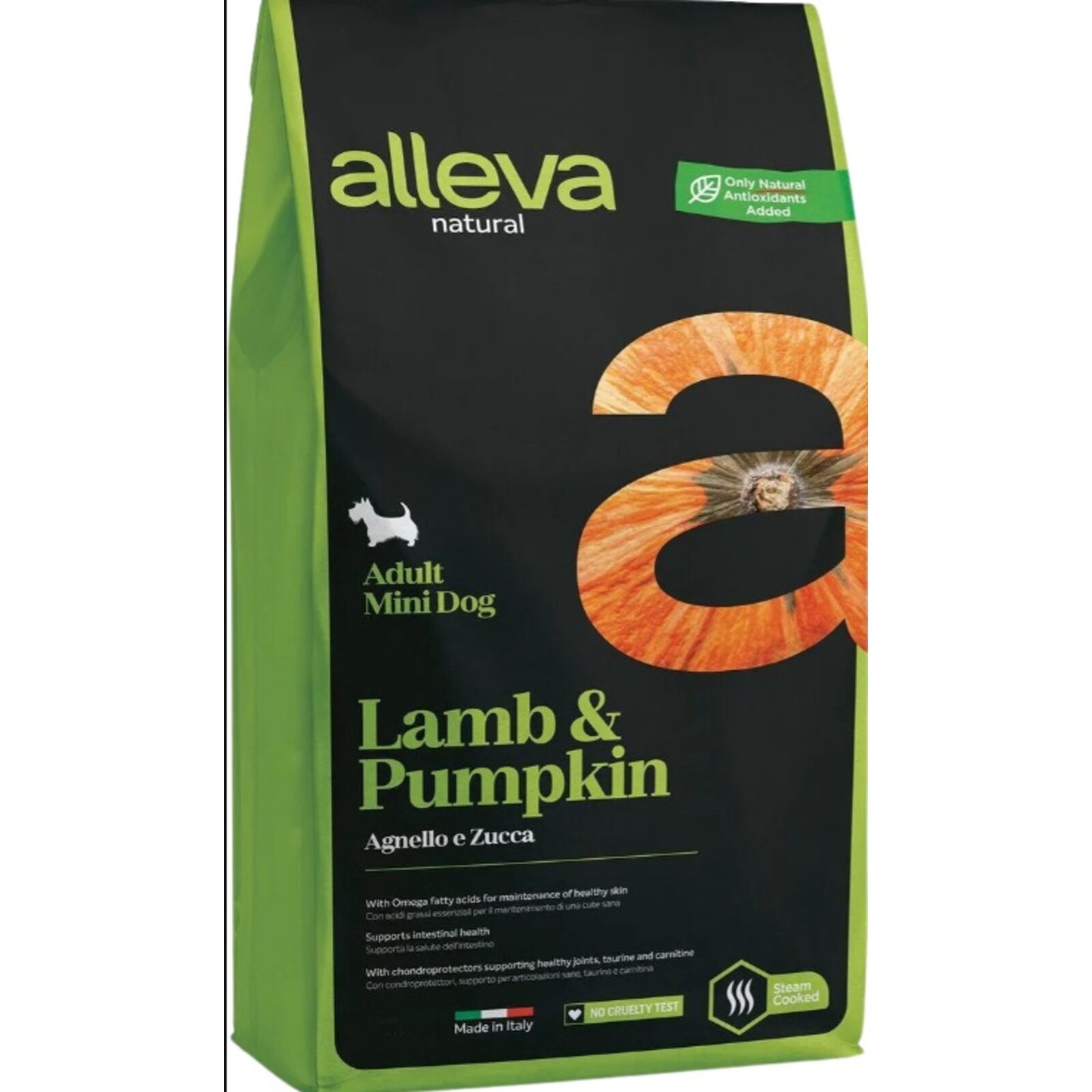 Az Alleva Natural Adult Mini Lamb & Pumpkin egy prémium, hipoallergén receptúra kistestű felnőtt kutyák számára, báránnyal és sütőtökkel. Gabonamentes, kiválóan emészthető formula, amely támogatja az egészséges emésztést és a fényes szőrzetet.