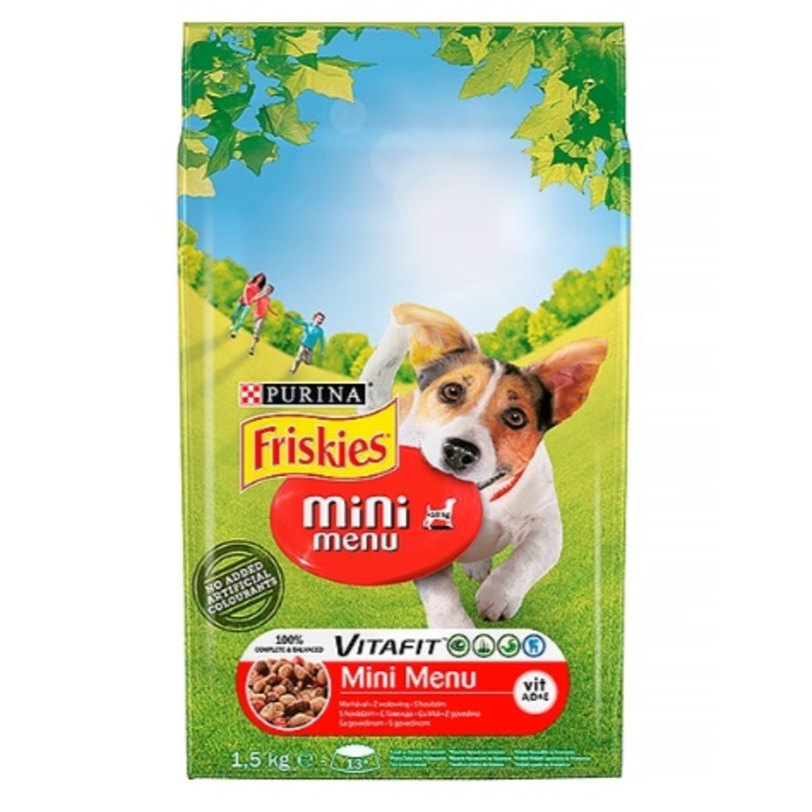 Omega-3 és -6 zsírsavakkal. PURINA® Friskies® Mini Menü ízletes eledel kifejezetten az Ön kistestű kutyája igényeinek is megfelelően kisebb méretű tápszemekkel. 100%-ban teljes értékű és kiegyensúlyozott táplálék minőségi összetevőkkel és rostokkal az egészséges emésztésért
