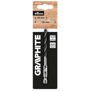 GRAPHITE Fafúró 1/4"-os hatszög szárral, 6 mm. Fa és rétegelt lemez megmunkálásához tervezték. Jellemzője a 6 mm átmérő és a 115 mm hosszúság. A feladatokhoz 2800 fordulat/perc maximális fordulatszámmal alkalmazkodik. Számos barkácsolási feladathoz jól használható.