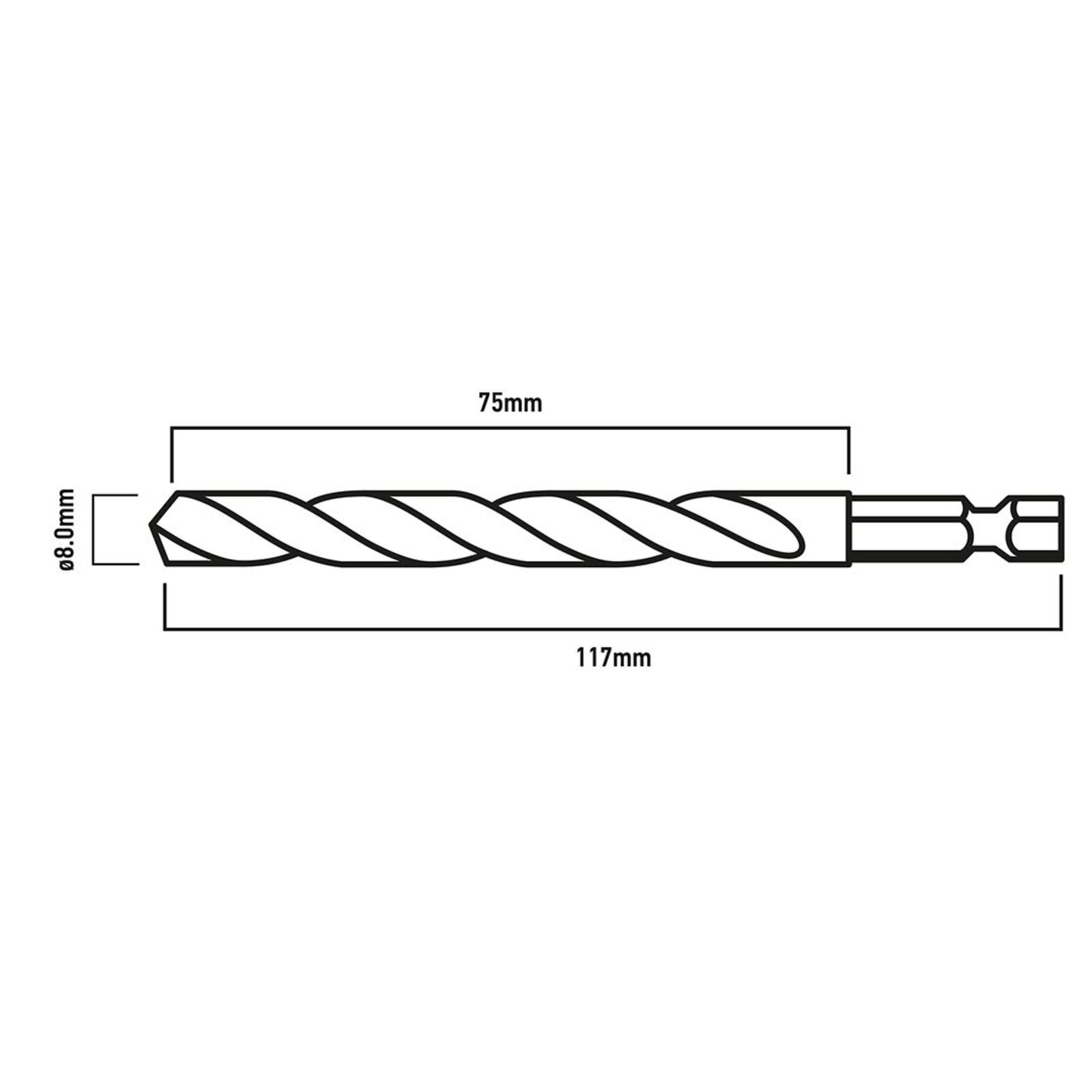 GRAPHITE Csigafúró, 1/4" hatszög szárral, HSS DIN 338, 8mm. Fúró fémek megmunkálásához. 8 mm átmérő, 117 mm teljes hossz, 75 mm munkahossz jellemzi. Megfelel a DIN 338 szabványnak, és 118 fokos élszöggel rendelkezik. A fúrók profi és amatőr alkalmazásban is jól működnek.