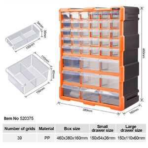 39 darabos rendező alkatrészek szétválogatásához, asztali használatra, falra szerelhető, irodai rendszerezéshez és otthoni tároláshoz. A többrekeszes kialakítás ideális tárolóeszközzé teszi.