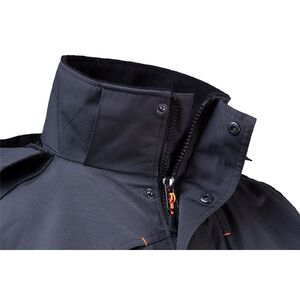 A jellegzetes textúrájú, tartós dobby anyag nem csak tartósságot, hanem esztétikus megjelenést is garantál. Ezenkívül a TPU (termoplasztikus uretán) membrán bevonat 5000 mm-es vízállóságot biztosít a kabátnak, ami fontos, ha nedves vagy esős körülmények között dolgozik.