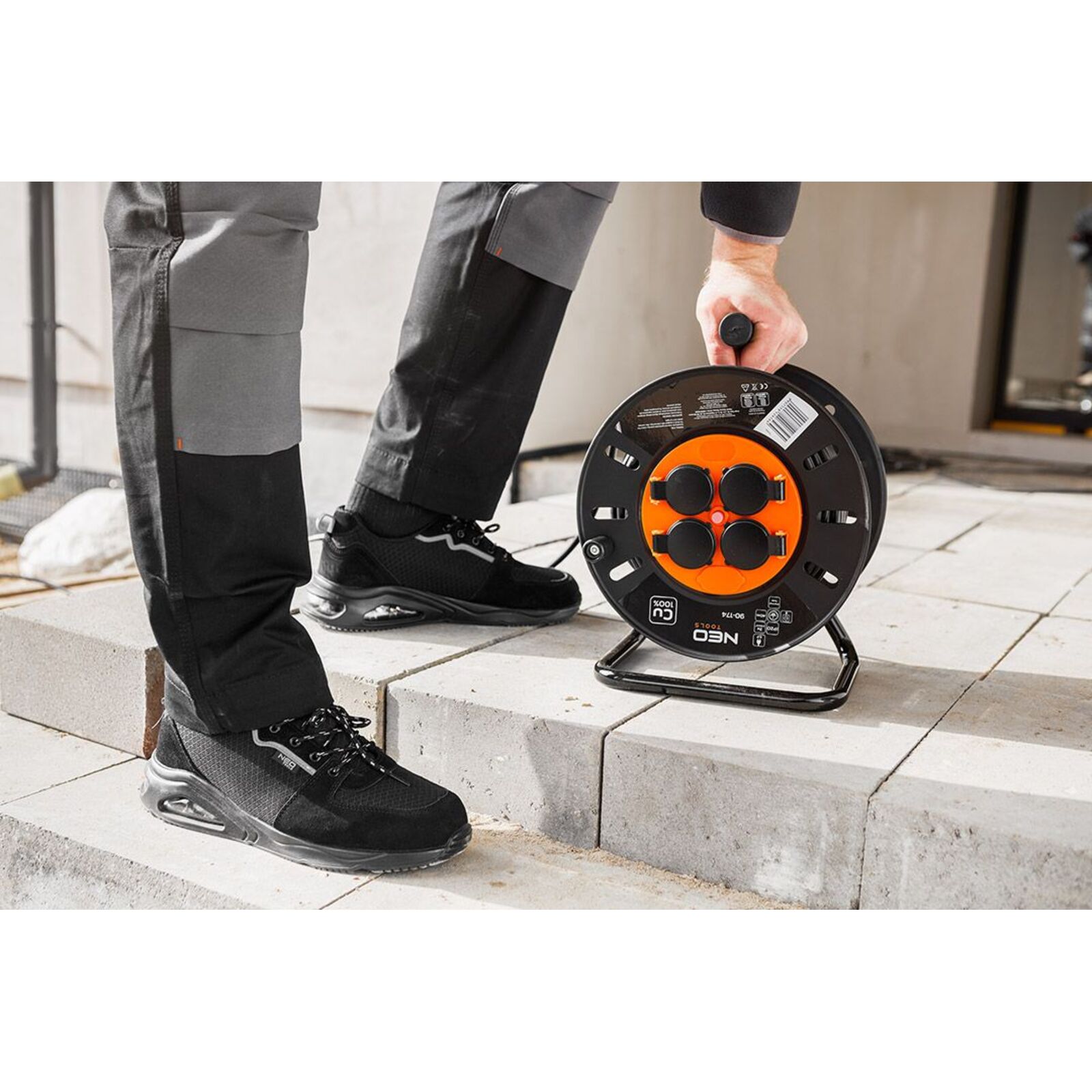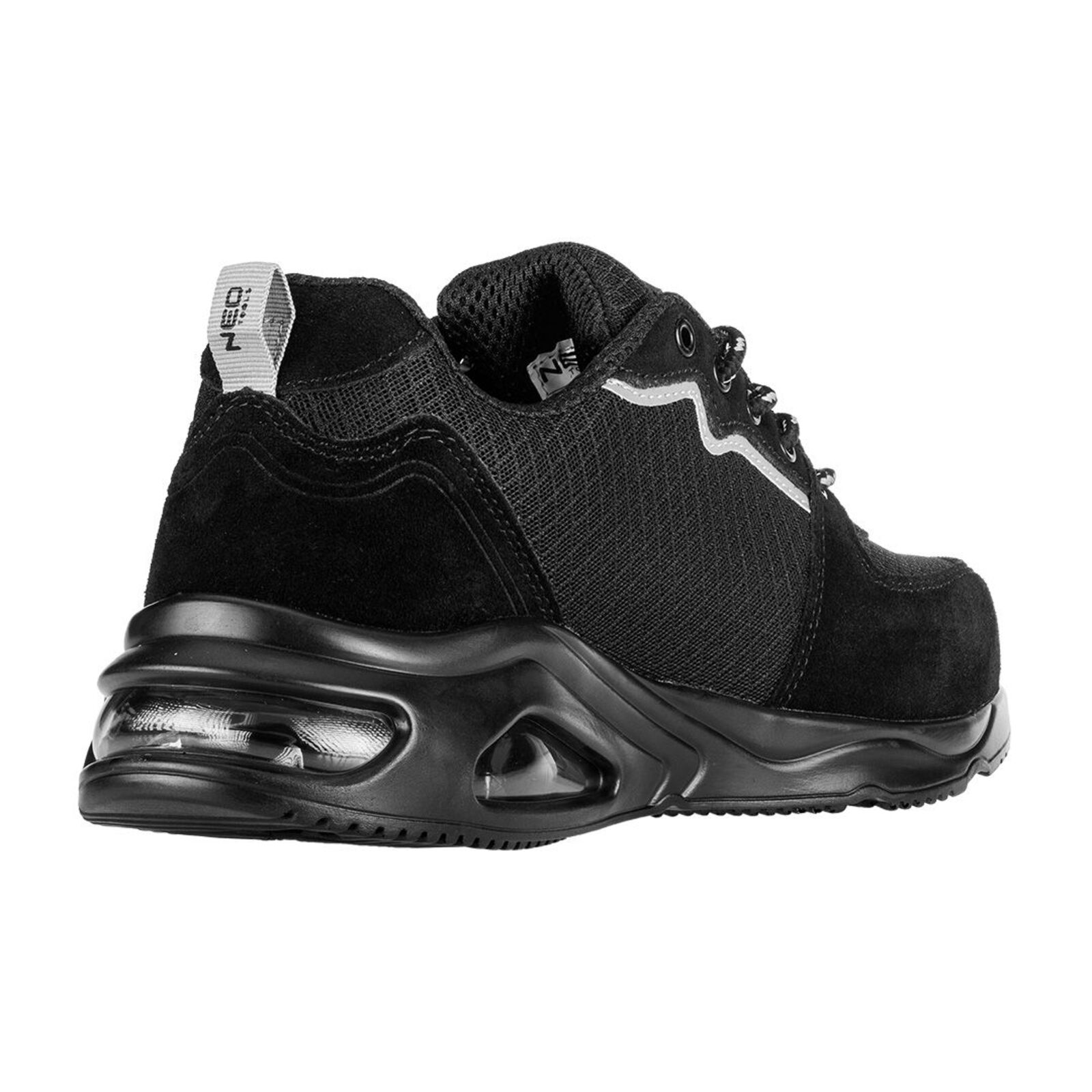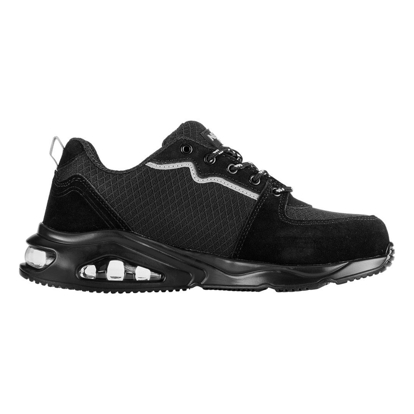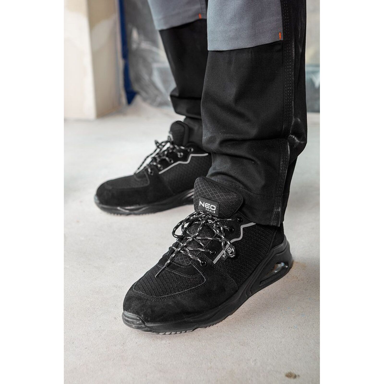 NEO 82-171 MUNKAVÉDELMI CIPŐ, S1 SR, FEKETE, NEO AIR, ACÉLBETÉTTEL, LÉGPÁRNÁS TALPPAL, FÉNYVISSZAVERŐ ELEMEKKEL. Acél talpbetéttel és fényvisszaverő elemekkel ellátva sokoldalúság és praktikusság jellemzi őket. Textil béléssel és felsőrésszel rendelkezik. A felsőrész a kopásnak leginkább kitett területeken velúrbőrrel van kiegészítve. A puha zónákkal ellátott HI-POLY habszivacs talpbetét megfelelő viselési kényelmet biztosít - akárcsak a légpárnával ellátott PU talp. A NEO TOOLS munkacipő az SR kategóriában készül, amelyet a glicerinnel bevont kerámialapra helyezett csúszásgátlás jellemez. A cipő védelmet nyújt a 200J energiájú ütésekkel szemben. Ez a NEO TOOLS sportos megjelenésű cipő, antisztatikus tulajdonságokkal rendelkezik, amely számos szakmai és mindennapi helyzetben hasznosnak bizonyul.