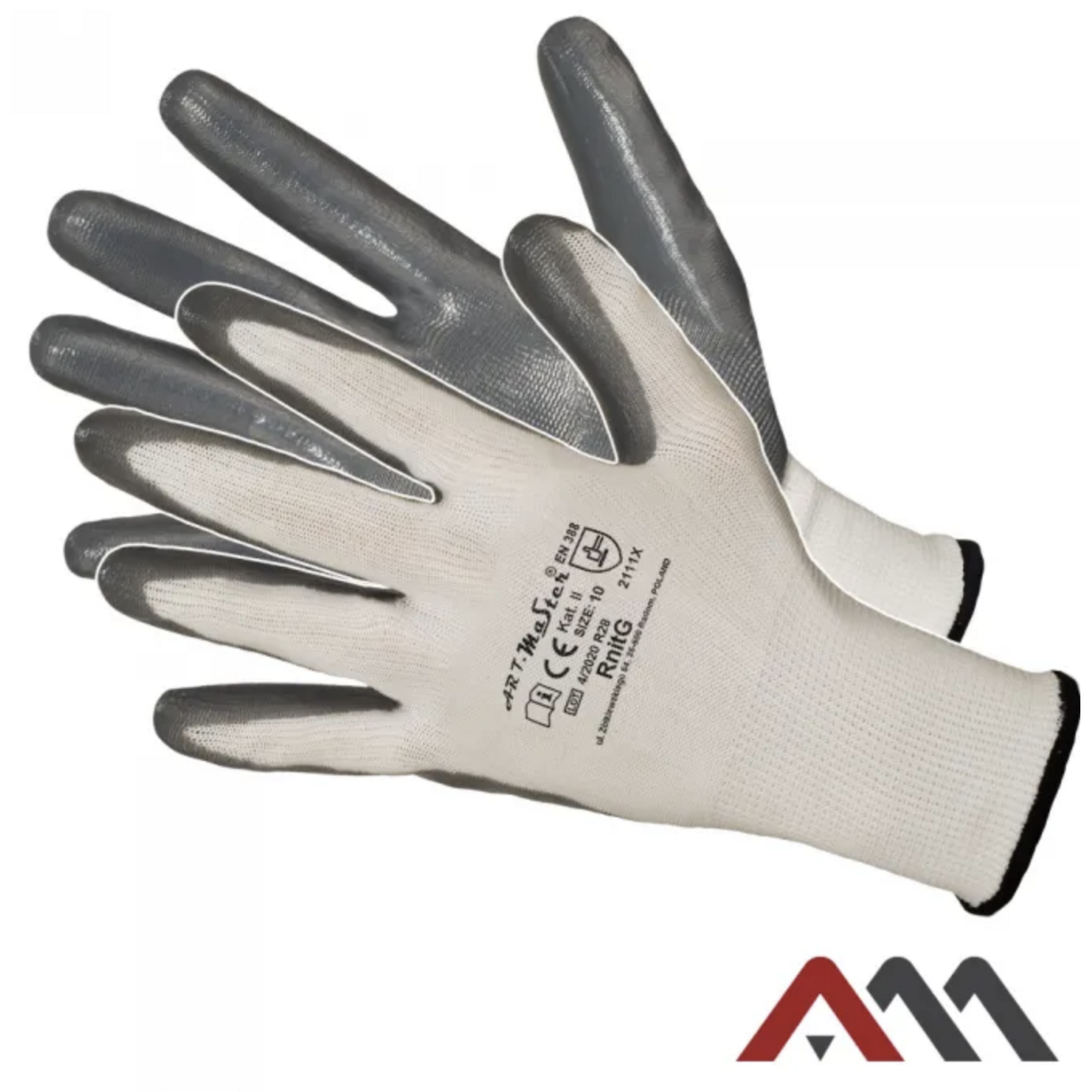Az RNIT Grey munkavédelmi kesztyű fehér színű, varratmentes poliészter kötésből készül, amely maximális rugalmasságot és kényelmet biztosít viselőjének. A tenyérrész és az ujjak szürke nitril mártással védettek, amely kiemelkedő ellenállást mutat a kopással, kenőanyagokkal és olajokkal szemben. Az ergonomikus kialakításnak köszönhetően a kesztyű tökéletesen illeszkedik a kézre (mint egy „második bőr”), lehetővé téve az apró tárgyakkal és szerszámokkal végzett precíz munkát. Ideális választás szerelőknek és ipari dolgozóknak, akiknek fontos a tisztaság és a zsír elleni védelem.