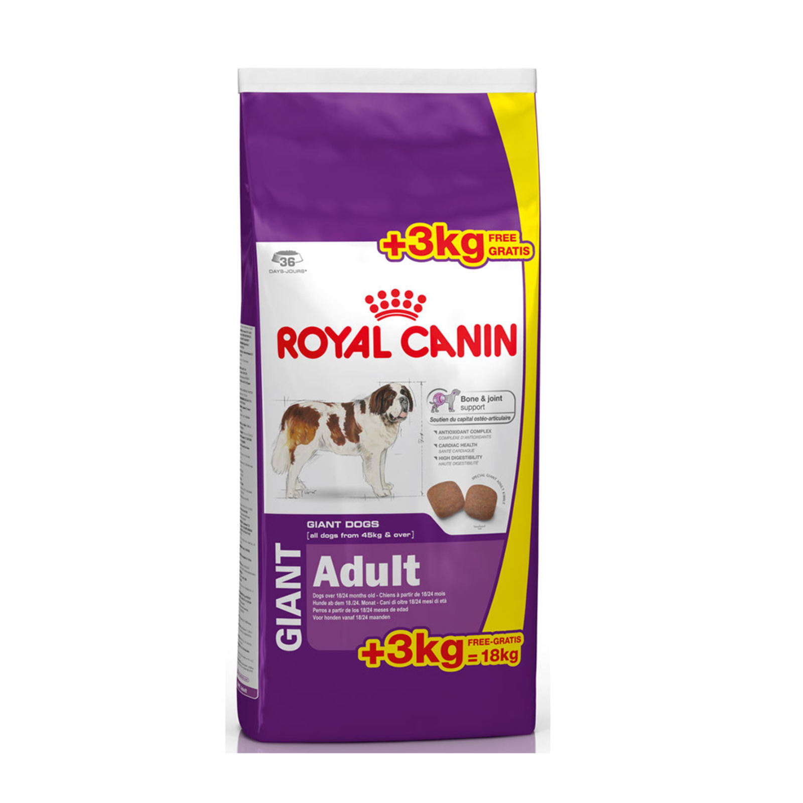A Royal Canin Giant Adult egy teljes értékű táp felnőtt kutyáknak, óriástestű fajták számára (45 kg vagy feletti felnőttkori testtömeg) - 18/24 hónapos kortól.
